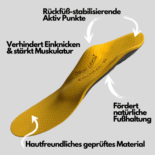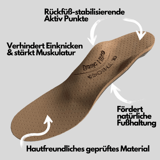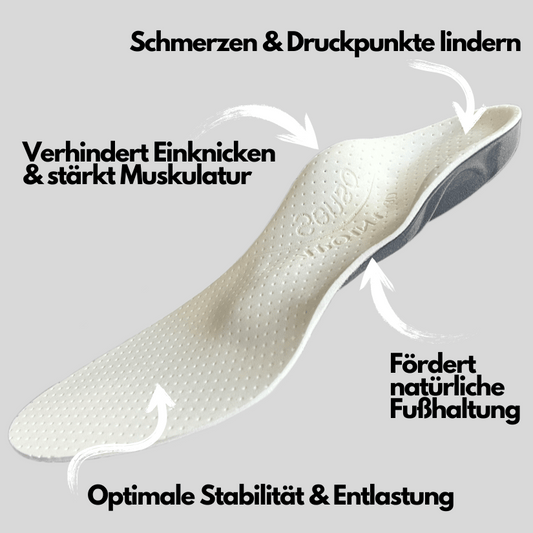 Unsere Einlagen verteilen den Druck gleichmäßig über den gesamten Fuß. Das reduziert schmerzhafte Druckstellen und sorgt für eine sanfte und natürliche Bewegung.